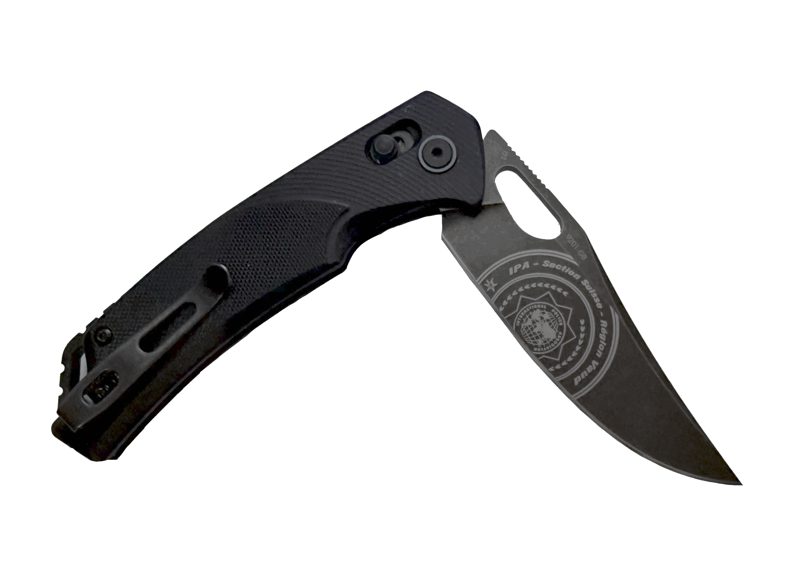 Couteau pliant IPA Vaud – Modèle noir avec lame noire – Édition spéciale